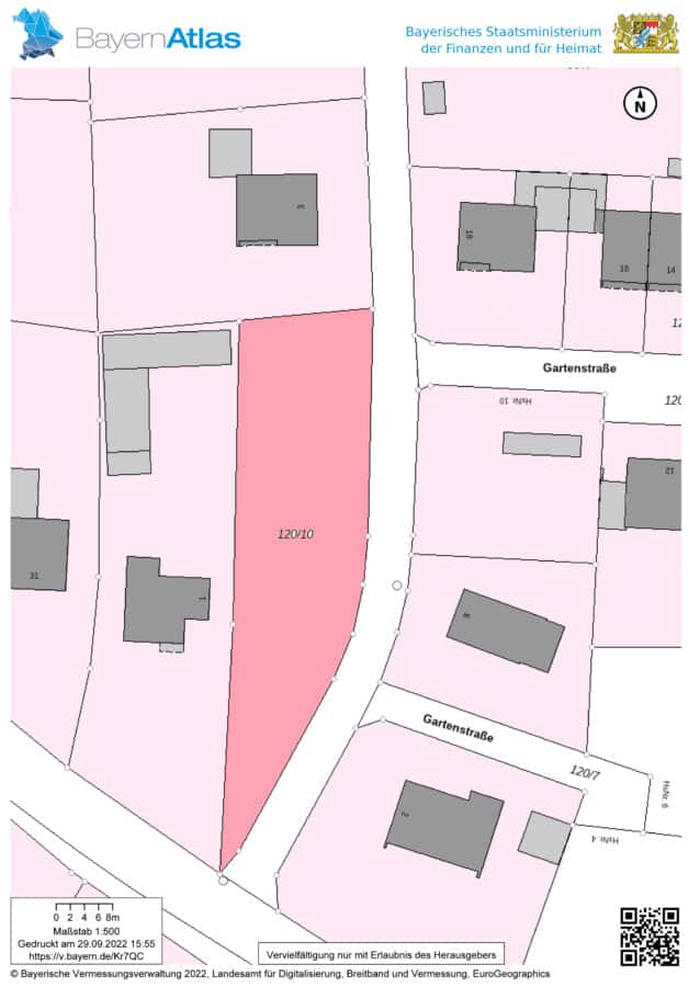 Das bedeutet, dass ein Bauvorhaben zulässig ist, wenn es sich nach Art und Maß der baulichen Nutzung in die Eigenart der näheren Umgebung einfügt. Im direkten Umfeld befinden sich Einfamilienhäuser und Doppelhäuser. Dadurch wäre eine derartige Bebauung für dieses Grundstück vorstellbar.