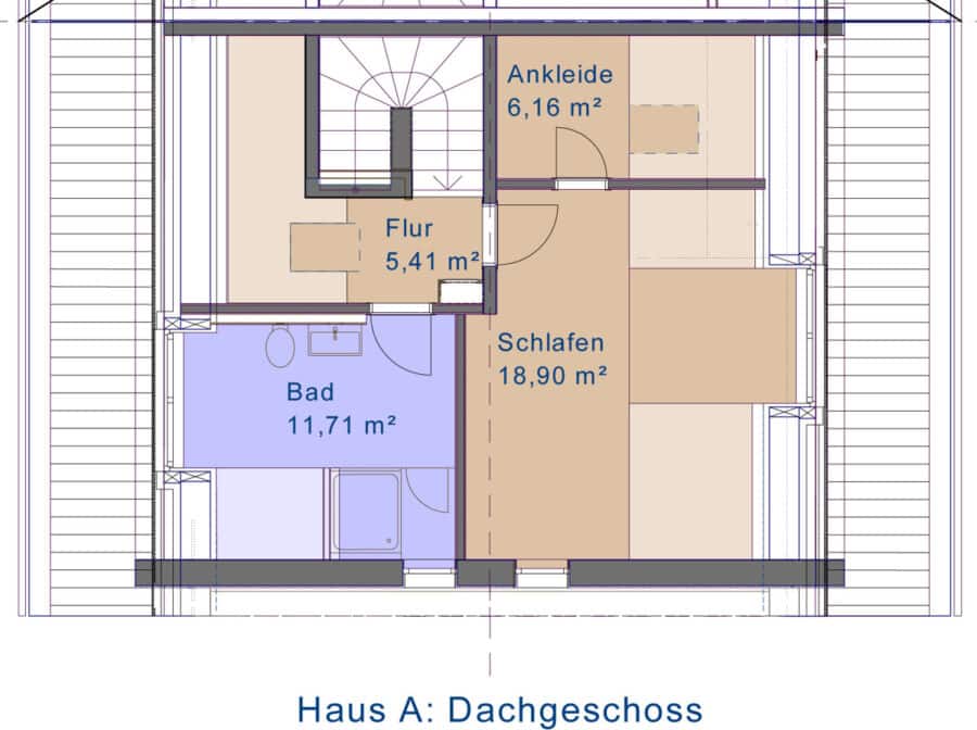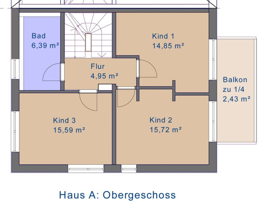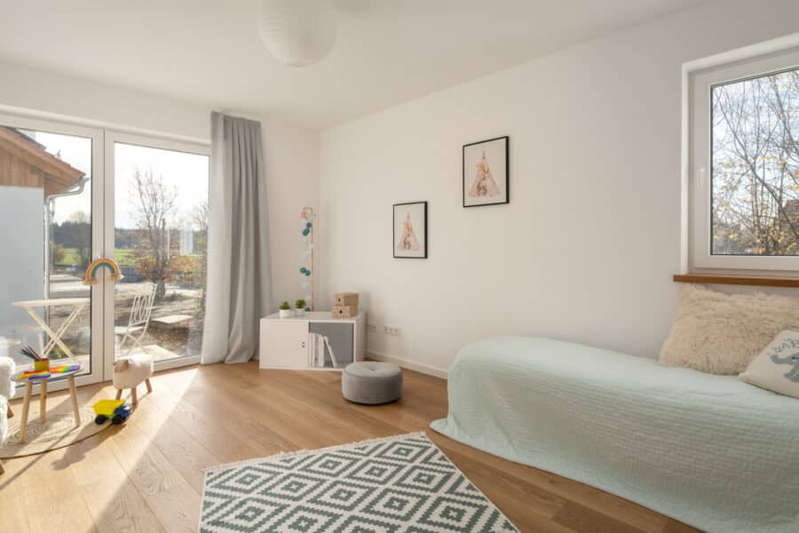 - Im OG: Hier wurde in der Ursprungsplanung ein Luftraum geplant. Stattdessen wurde das angrenzende Zimmer größer.
