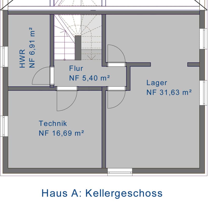 - Lager KG wurde nicht als Keller sondern als Hobbyraum gebaut. Im Gegensatz zu Eingabeplanung wurden zum Beispiel drei Lichtschächte und nicht nur einer gebaut. Die Hälfte der Fläche, inkl. Flur wurde in die WFL eingerechnet: