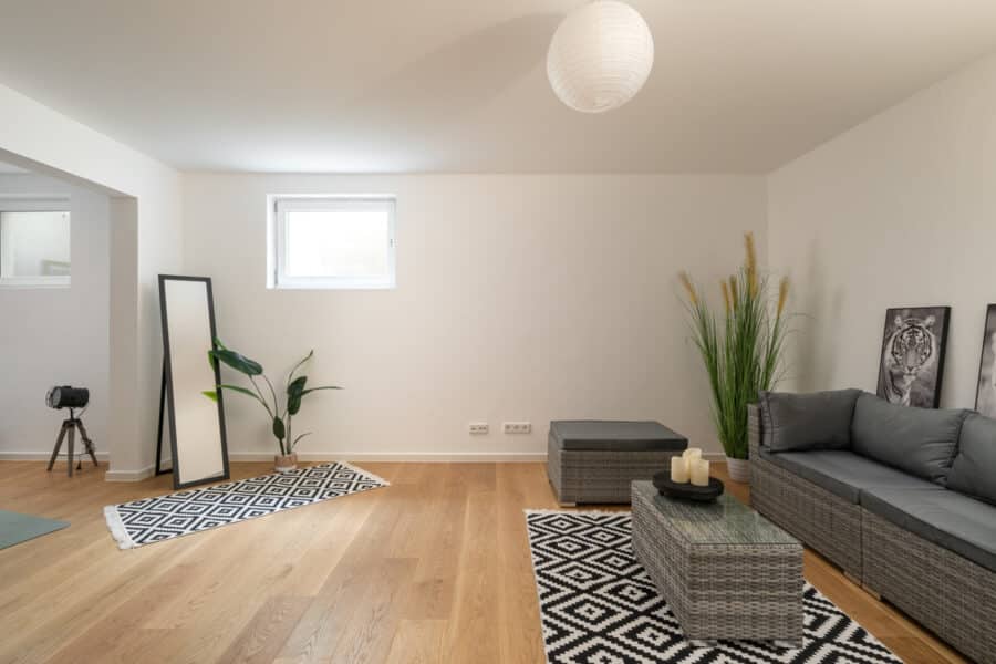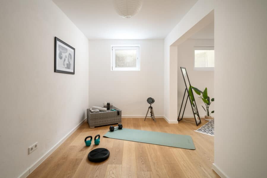 Das ganze Haus wird durch eine Wärmepumpe und Fußbodenheizung gewärmt, welche sich mit einem Thermostat auf jeder Ebene oder durch Smarthome via App steuern lässt. Durch das verbaute m KNX-System (MDT technologies GmbH) lassen sich sowohl die Heizung als auch die Elektrik steuern. Auf dem Dach wurde eine 8kWp-PV-Anlage verlegt, welche den im Keller stationierten 9kW-Speicher speist. Ein großzügiger Hobbykeller lädt zur freien Gestaltung ein. Im Kaufpreis enthalten ist eine Doppelgarage, ein Mülltonenhäuschen sowie eine gepflasterte Einfahrt inklusive Humus und Begrünung.