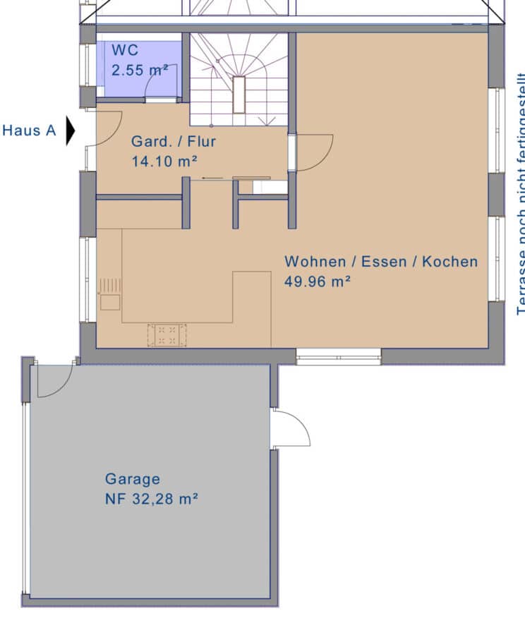 - Im EG. Korrektur Terrassengröße, hälftige Anrechnung