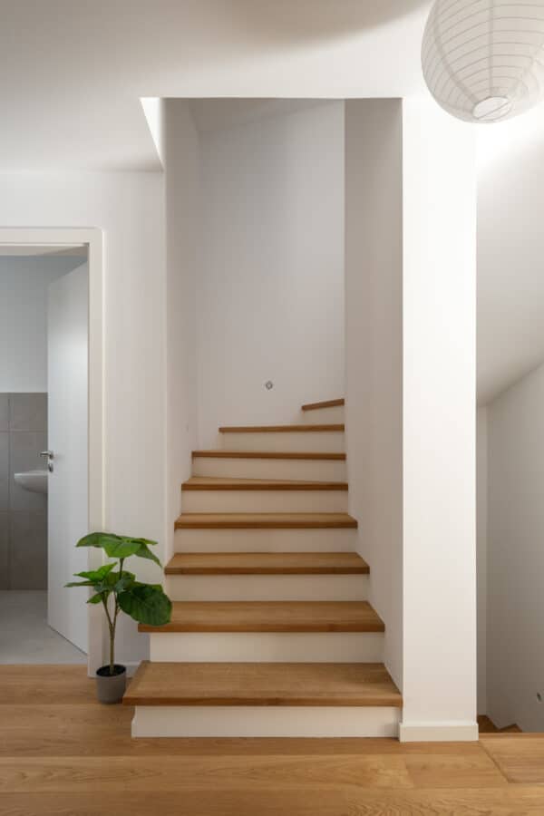 Durch das gesamte Haus zieht sich eine Edle Designlinie gemischt aus geöltem, dunklen Naturholz, großen Glasfenstern und luxuriösen Armaturen in schwarzer Farbe. Die Badezimmer sind ein absoluter Hingucker und wurden mit schönsten Materialien ausgestattet. Im 1. Stock befinden sich die ebenfalls hochwertigen Kinder- und Arbeitszimmer wovon 2 einen Zugang zu einem Balkon mit Aussicht in den eigenen Garten Richtung Süden besitzen. Im Obergeschoss befindet sich das Masterbedroom mit Dachgauben Fenster, französischem Balkon und begehbarem Kleiderschrank.