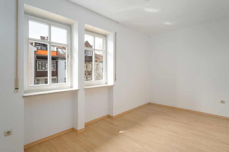Ein echtes Highlight ist auch der große, mit Glas überdachte Balkon im Dachgeschoss. Hier genießen Sie ganzjährig einen herrlichen Blick über die Altstadtdächer von Freising – ob bei Sonnenschein oder Regen.