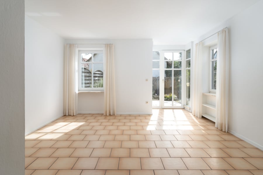 Der offene Wohn- und Essbereich im Erdgeschoss ist hell, einladend und der natürliche Mittelpunkt des Hauses. Großzügige Fensterflächen sorgen für viel Tageslicht und einen fließenden Übergang zur liebevoll gestalteten Terrasse. Dank der optimalen Ausrichtung genießen Sie hier Sonne und Ruhe in geschützter Atmosphäre – ein perfekter Ort für entspannte Stunden im Freien.