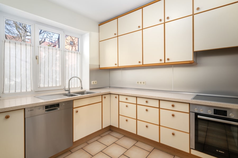 Die vorhandene Einbauküche ist mit modernen Bosch-Geräten ausgestattet und bietet viel Stauraum sowie eine durchdachte Anordnung – ideal für alle, die gerne kochen und gemeinsam genießen.