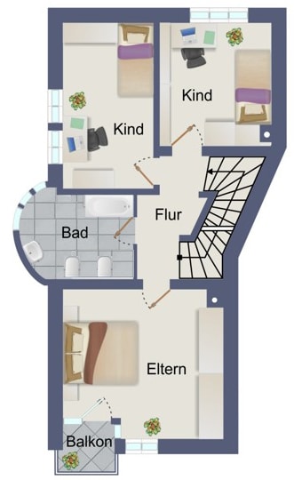 - Vielseitige Nutzungsmöglichkeiten (z. B. Homeoffice, Gästeetage oder weiteres Kinderzimmer)