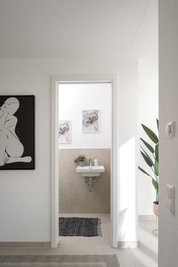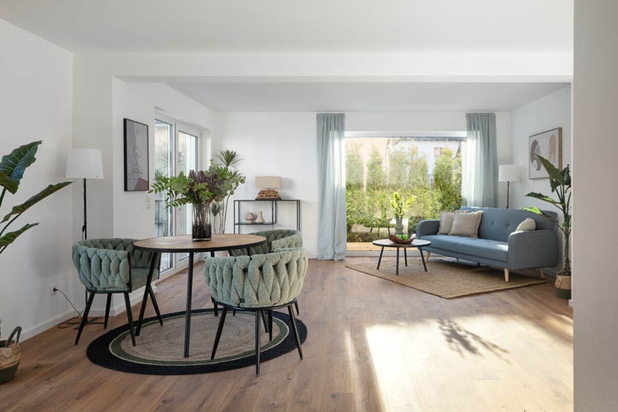 Im Erdgeschoss werden Sie im hellen Eingang empfangen, der direkt in den Wohn- und Essbereich mit einer offenen Küche übergeht. Mit einer Größe von fast 40m2 ist er ein natürlicher Treffpunkt für den Alltag und bietet direkten Zugang zur Terrasse, die den Wohnraum an warmen Tagen erweitert. Eine hochwertige Einbauküche eines Schreiners kann auf Wunsch vor dem Einzug eingebaut werden, sodass Sie nach Ihrem Kauf außer einem Umzug nichts weiter organisieren müssen. Ein separates WC für Gäste, sowie ein Hauswirtschaftsraum ist ebenfalls vorhanden.