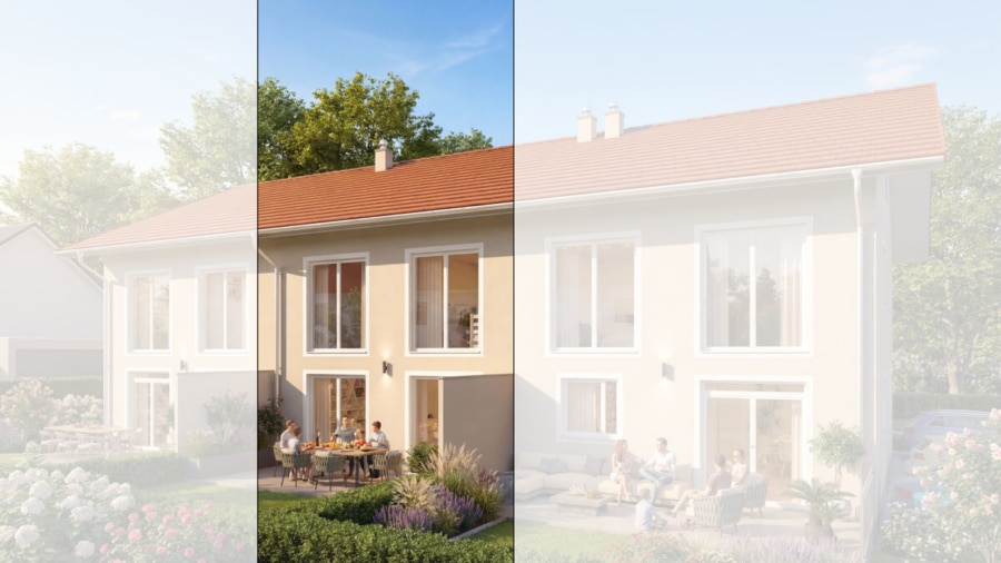 Der Kaufpreis beinhaltet das Grundstück sowie die vollständige Neuerrichtung des Reihenmittelhauses in hochwertiger Ausführung. Die dargestellten Visualisierungen und Grundrisse dienen der Veranschaulichung des genehmigten Haustyps; geringfügige Abweichungen im Detail sind je nach finaler Planung möglich.