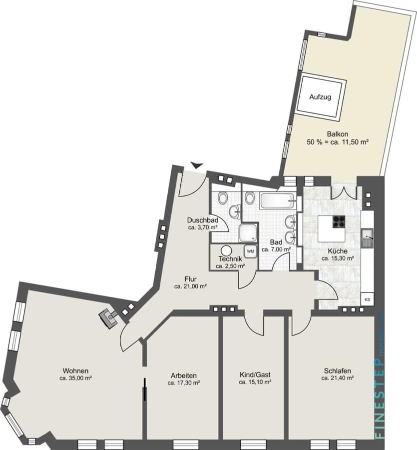 Wir freuen uns, Ihnen dieses Objekt bei einem Besichtigungstermin ausführlich vorzustellen. Aus rechtlichen Gründen bitten wir Sie, für Ihre erste Kontaktaufnahme mit uns das Kontaktformular des Portals zu nutzen, auf dem Sie diese Immobilie gefunden haben. Finestep bietet dieses Objekt provisionspflichtig zum Kauf an. Für die vom Eigentümer übernommenen Objektdaten übernimmt Finestep keine Gewähr in Bezug auf die Vollständigkeit, Richtigkeit und Aktualität dieser Informationen. Irrtum und Zwischenverkauf ist vorbehalten. Die Käuferprovision in Höhe von 2,98% inkl. 19% USt. ist verdient und fällig mit Beurkundung des notariellen Kaufvertrages. Ist Ihnen das von Finestep nachgewiesene Objekt bereits bekannt, ist dies Finestep schriftlich spätestens innerhalb von fünf Werktagen unter Nennung der Quelle und des Nachweisdatums mitzuteilen. Sämtliche Unterschriften und Mitteilungen haben auch bei Übermittlung per Telefax und E-Mail Ihre Rechtsgültigkeit. Als Gerichtsstand wird München vereinbart sowie die Anwendung Deutschen Rechts. Alle Angaben nach bestem Wissen und nach Angabe des Verkäufers. Irrtum und Zwischenverkauf vorbehalten. Dieses Exposé ist eine Vorabinformation, als Rechtsgrundlage gilt allein der notariell abgeschlossene Kaufvertrag Finestep Immobilien GmbH Humboldtstr. 8 81543 München http://www.finestep.de