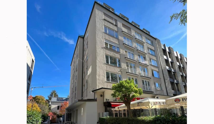 In diesem exklusiven Haus in Bestlage Münchens befindet sich diese traumhafte Wohnung in der dritten Etage, die sie bequem über einen Aufzug erreichen.