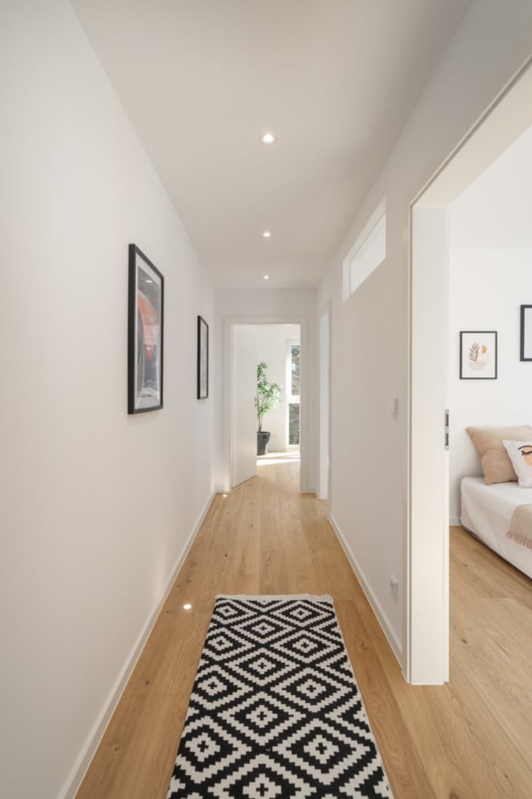Neben dem exklusivem Garagenzugang erreichen Sie die Wohnung außerdem über den schönen Flur des Hauses.
