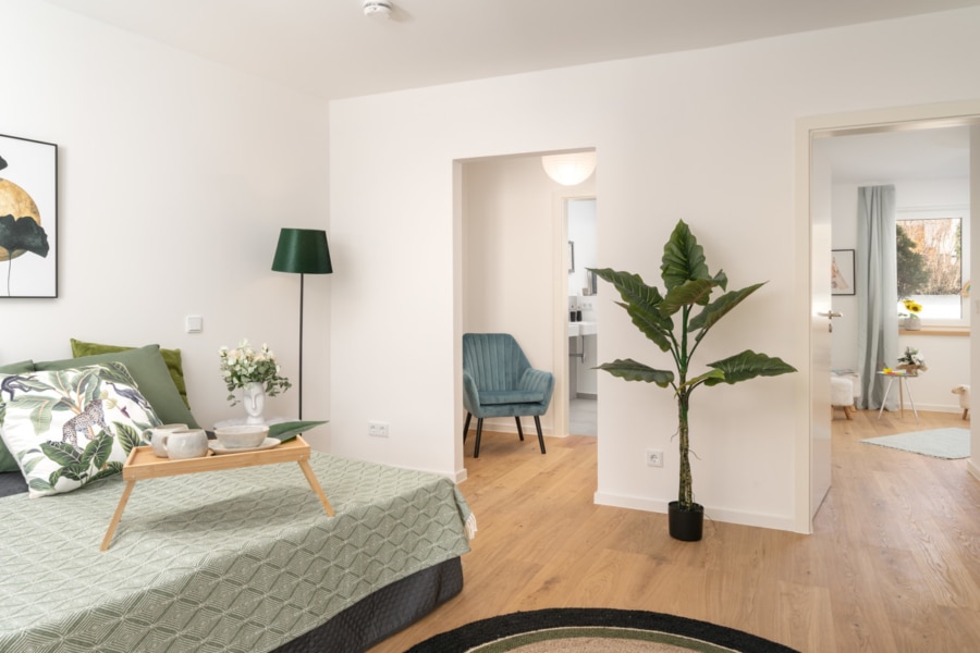 Ruhig gelegen, trotzdem zentral und für Wohnen auf höchstem Level ausgerichtet. Die Energieklasse A mit einem Endenergiebedarf von 33,2kWh/(m²·a) übertrifft die Standards der GEG-Kategorie „MFH-Neubau“ bei weitem.