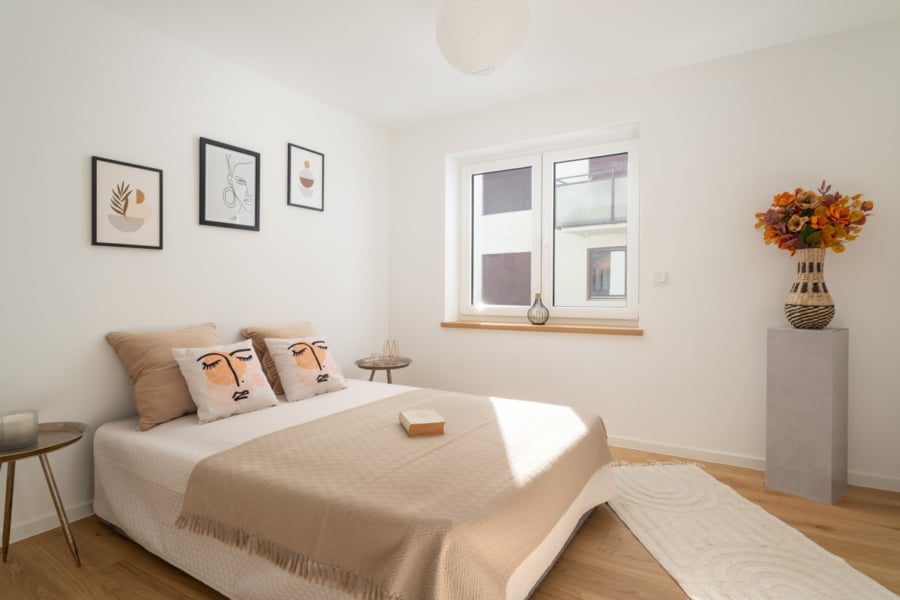 Neben allen Elektro- und Sanitärleitungen, Fassade, Dach, Balkonen, Dachterrassen, Fenstern, Putz und Dämmung wurde auch der Estrich und der Bodenaufbau auf den neuesten Stand gebracht. Die Energieklasse A mit 33,2kWh/(m²·a) übertrifft die Standards der GEG-Kategorie „MFH-Neubau“ deutlich: Ein Beleg dafür, dass hier „kein Stein auf dem anderen geblieben ist“.