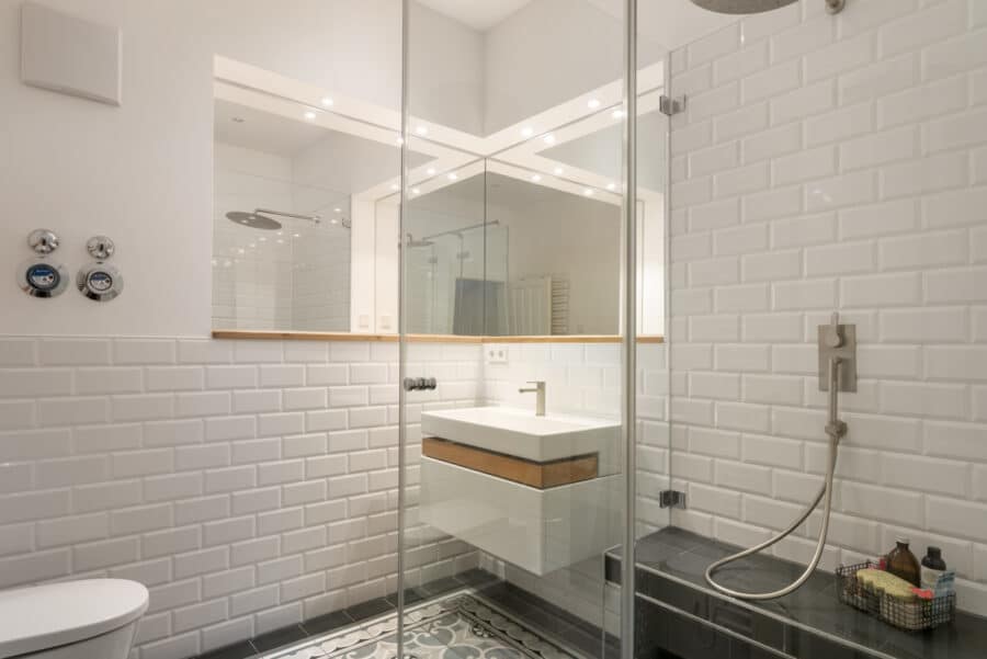 - Modernisiertes Bad mit zweiseitigem Wandspiegel