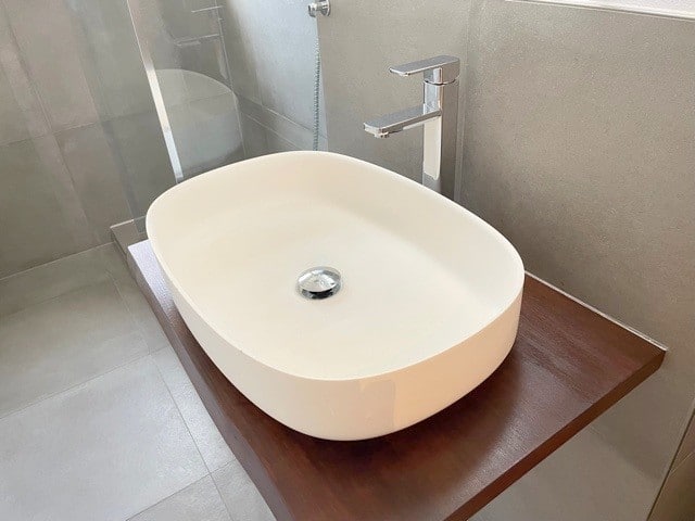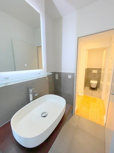 - Badezimmer mit Regendusche und Design-Waschtisch