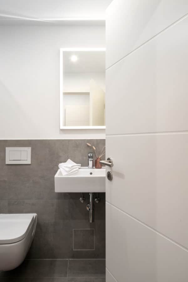 - Modernisiertes Bad mit designorientierten und großformatigen Fliesen