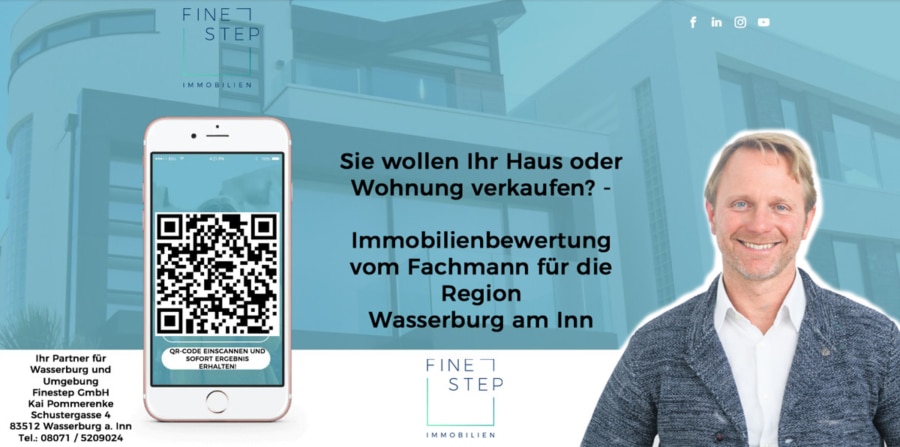 Für die vom Eigentümer übernommenen Objektdaten übernimmt Finestep keine Gewähr in Bezug auf die Vollständigkeit, Richtigkeit und Aktualität dieser Informationen. Irrtum und Zwischenverkauf ist vorbehalten. Die Käuferprovision in Höhe von 3,57 % inkl. gesetzlicher USt. ist verdient und fällig mit Beurkundung des notariellen Kaufvertrages. Der Immobilienmakler hat einen provisionspflichtigen Maklervertrag mit dem Verkäufer in gleicher Höhe abgeschlossen.